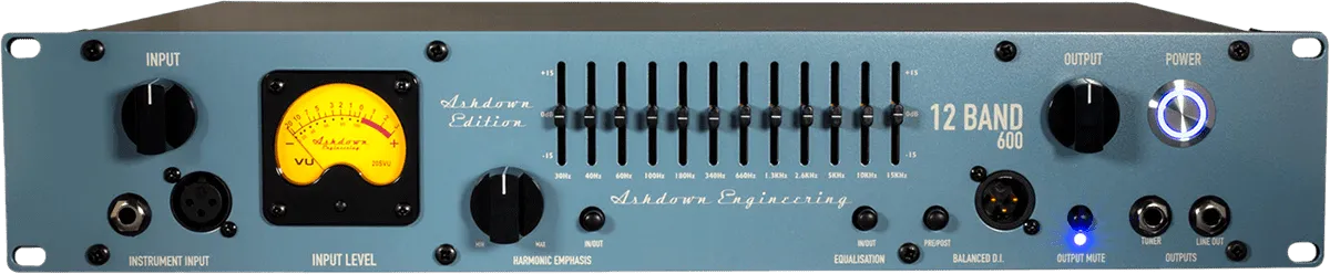 The 12-Band bass amplifier uses a sought-after Ashdown pre-amp featuring a 12-band graphic equaliser for the most versatile tone shaping available and Harmonic Emphasis to provide the ultimate in Hi-Fi for Bass. Coupled with balanced XLR instrument input and a simplistic design approach, the signal path is kept to an absolute minimum for maximum signal integrity and pure tone.