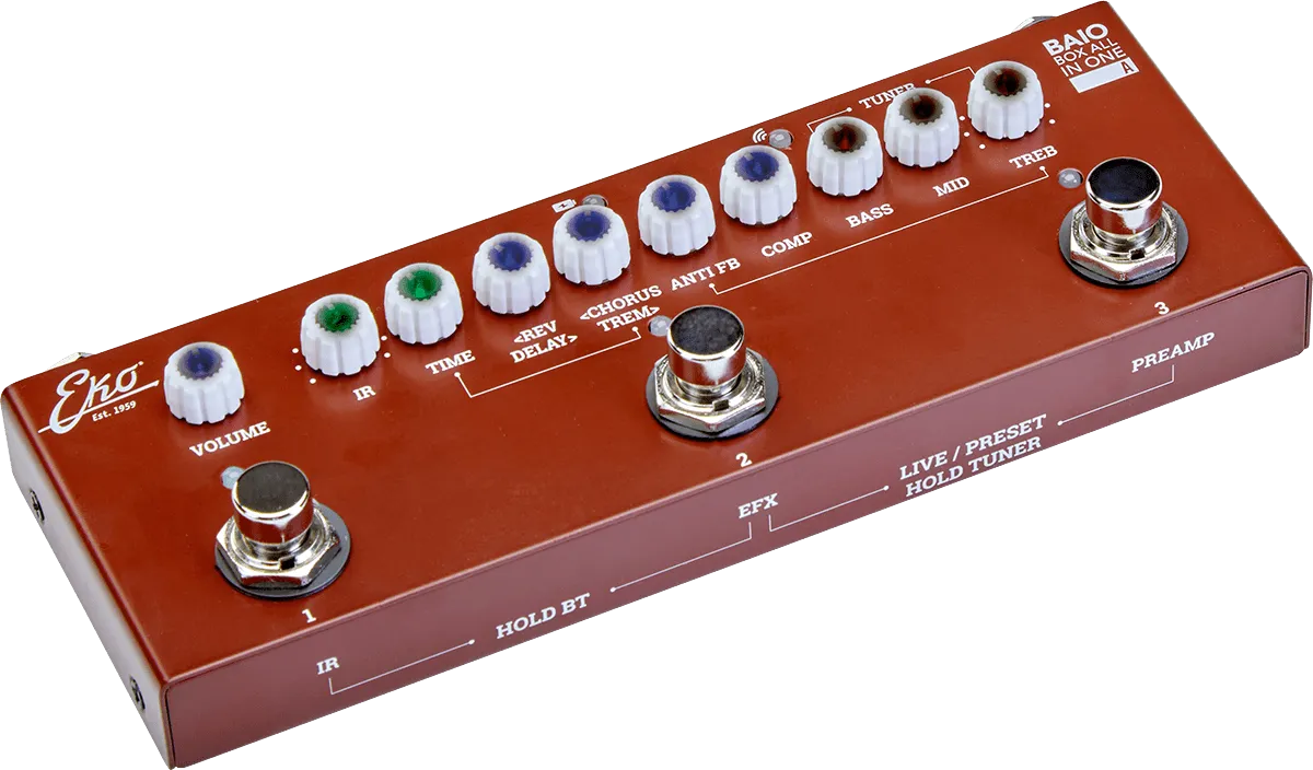 Multi-effects for acoustic guitars with IRs – battery powered / Bluetooth