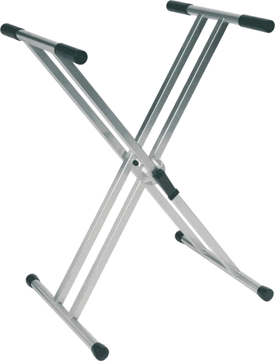 Heavy-duty Master 4 titanium keyboard stand with double braces and aluminium center Ball-lock for precise adjustment. Arms equipped with rubber ends.
