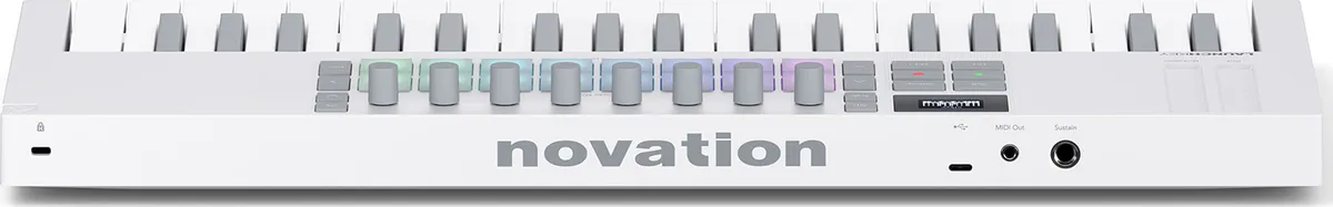 Launchkey Mini 37 White can be connected directly to synths and other MIDI hardware with its mini-jack MIDI out port.