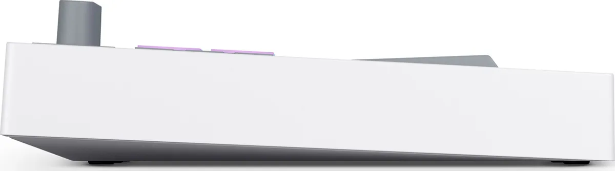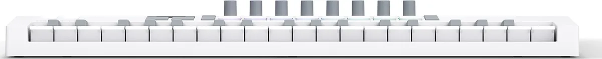 Launchkey Mini 37 White is a compact but powerful DAW controller with a synth-style mini keyboard, eight endless rotary encoders and 16 velocity sensitive pads for playing drums, instruments and launching clips; it also includes creative Chord and Scale modes that work with the OLED display to make staying in key effortless.