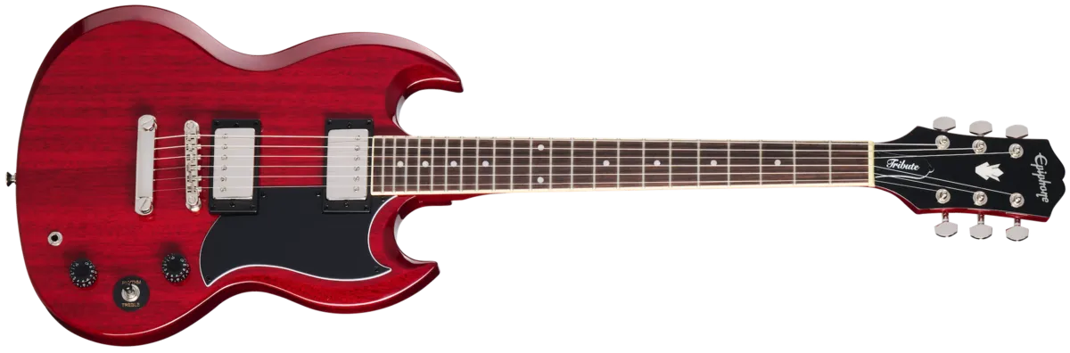 Epiphone proudly presents the new SG™ Tribute, an incredible, affordable introduction to the classic sound and vibe of the SG! The SG Tribute has all the signature features that have made this iconic instrument a worldwide favorite for decades. It boasts a mahogany body, powerful Epiphone 650R™ and 700T™ ceramic humbuckers™ with nickel covers, and a mahogany neck with a laurel fretboard. It's a no-nonsense axe with all the playability and tone you'd expect from an SG guitar. Available in multiple finish color options. Also offered in a left-handed version. An optional gig bag is also available.