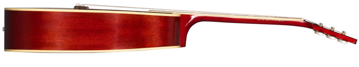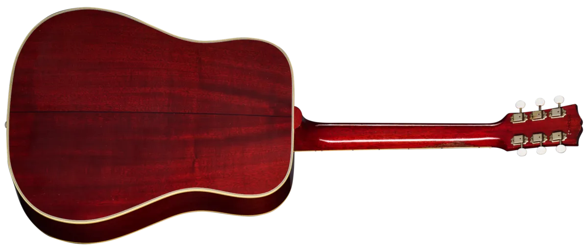 First introduced in a square shoulder configuration in 1962, the Country Western was created as a variation of Gibson's popular Southern Jumbo model. With the body shape of a Hummingbird™ but in a Natural finish and having an unadorned tortoise pickguard, the Country Western delivers wonderful tonal quality and a unique look that has been a resounding hit with players from the moment it was first released, all the way up to the present day; it has been one of our most requested acoustic models for reissue since the 1990s. This 1963 Country Western features a thermally aged Sitka spruce top, a mahogany back, sides, and neck, an Indian rosewood fretboard with 20 standard frets and mother-of-pearl parallelogram inlays, a bone bridge, nut, and bridge pins, the classicCountry Western tortoise pickguard, and nickel Gotoh® tuners with white buttons. It's been Heavy Aged by the artisans of the Murphy Lab to give it the look and feel of a well-loved, longtime musical companion.