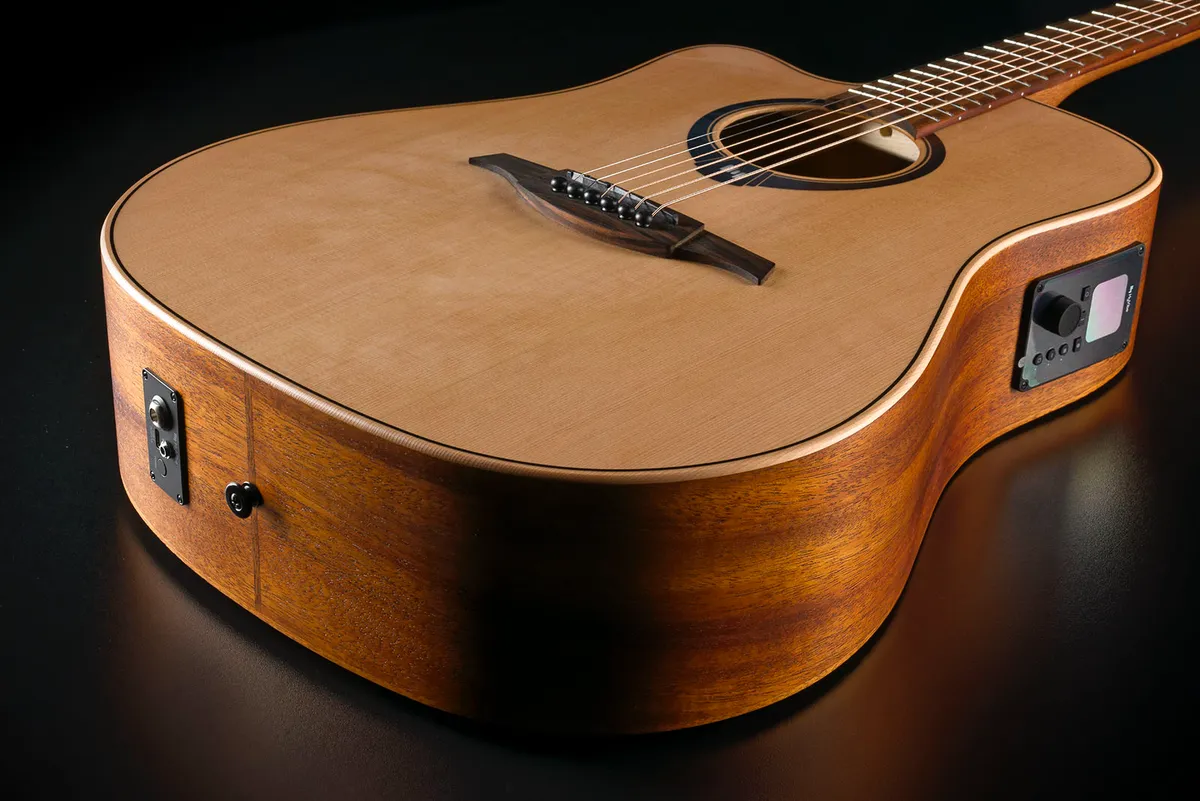 The HV10-L-DCE offers left-handed players the same rich, resonant sound as its right-handed counterpart. With a solid red cedar top and Khaya mahogany back and sides, this dreadnought delivers