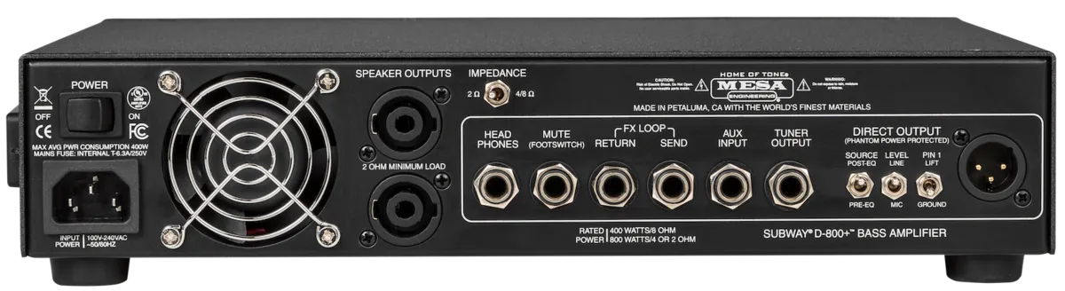 Tuner Output: Tuner Output (back panel) with Play/Mute Switch (front Wattages Quick Reference: 800 Watts @ 4 or 2 Ohms / 400 Watts @ 80hms panel) and External Mute Switching Jack (back panel) - See Footswitch in the Accessories Section for additional options