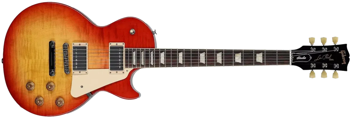 Ultra-Modern weight relief mahogany body with AA figured maple cap, mahogany neck with bound rosewood fretboard and SlimTaper profile, cream plastics, Burstbucker Pro pickups with push/pull coil tap volume knobs, soft shell case.