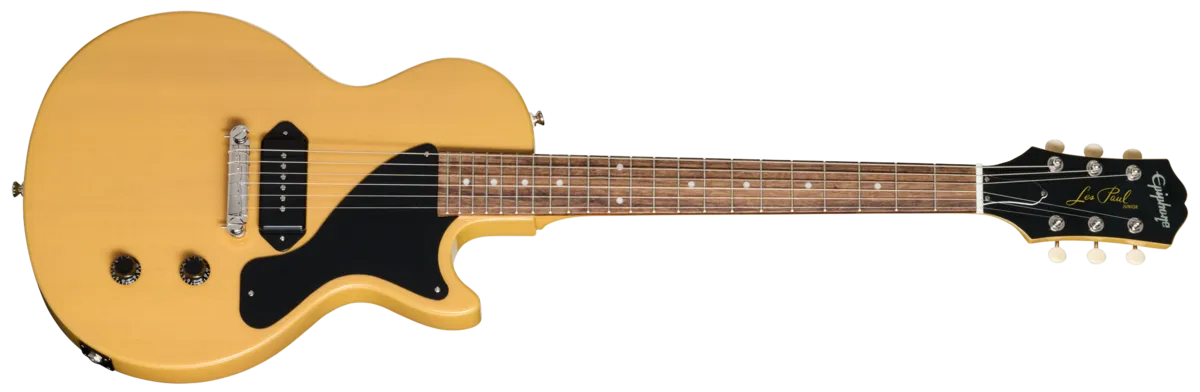 The Les Paul™ Junior was first introduced in 1954 during Gibson's first Golden Era. It was designed as an affordable, high-quality, solidbody electric guitar option suitable for students and beginners. Compared to the standard Les Paul models of the early and mid-1950s, the Les Paul Junior was stripped down to the essentials, with the carved maple top, fretboard and body top binding, second pickup and its controls, and the more ornate decorative features of the Les Paul Standard removed, leaving a slab mahogany body and single pickup-equipped model that could be priced more attractively for beginners. However, it wasn't long before players of all levels of experience and ability, including many professional musicians, discovered the magic of this erstwhile "student model" and began to utilize it on recordings and stages worldwide, performing in a broad range of musical genres. Famous Les Paul Junior players include Leslie West of Mountain, Martin Barre of Jethro Tull, Charlie Starr of Blackberry Smoke, Glenn Frey of the Eagles, Johnny Thunders, John Lennon, Billie Joe Armstrong of Green Day, and Steve Howe, among others. The appeal? The Les Paul Junior's outward simplicity disguises the wealth of tonal options available from the single pickup, volume control, and tone control; by varying where you place the picking hand, as well as the settings on the master volume and tone knobs, you can coax a surprisingly wide range of different, and very cool, tones out of a Junior.