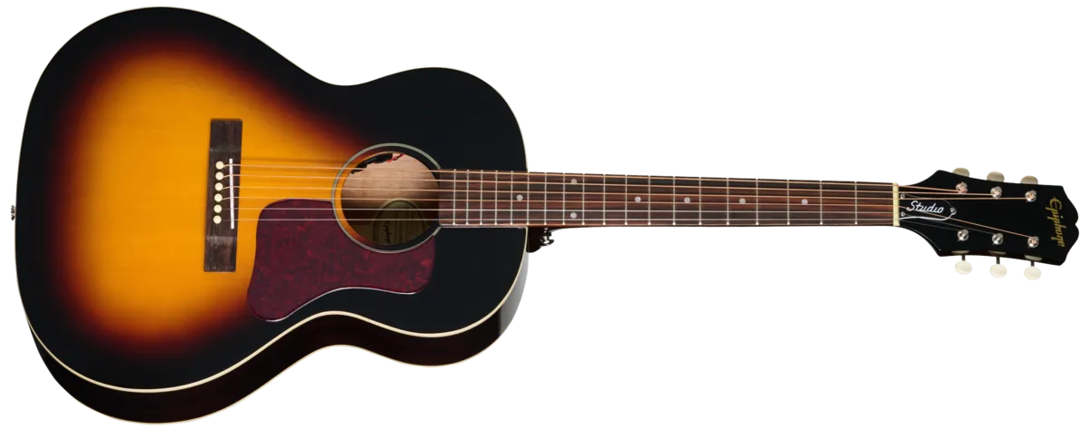 The Epiphone Blues King Studio is part of the all-new Epiphone Studio Acoustic Collection. These guitars have been completely reimagined to offer the most authentic and affordable acoustic guitars inspired by iconic Gibson designs. The Blues King Studio delivers a delightful blend of vintage charm and modern craftsmanship and was designed to deliver a soulful and resonant sound that''s perfect for blues and folk enthusiasts. Based on classic Gibson parlor acoustics, the Blues King Studio''s smaller parlor-sized body and shorter 24.75" scale length make it an excellent choice for a first guitar for younger players and a solid choice for smaller-statured players. Its bluesy tone is ideal for fingerstyle, blues, folk, Americana, and other traditional music styles. The Blues King Studio has a layered, L-00-style mahogany body with single-ply cream binding on the top and back and a solid spruce top for a responsive, balanced tone with excellent dynamic range that sounds even better as it ages. The mahogany neck is attached to the body with a glued-in tapered dovetail neck-to-body joint and features a comfortable Rounded C profile. The neck is capped with a rosewood fretboard equipped with 19 standard frets and adorned with simple pearloid dot inlays. The other ends of the strings are routed over a compensated plastic saddle and are anchored to the rectangular rosewood bridge with ivory-colored bridge pins. We also included other details that give the Blues King Studio even more vintage-style flair, including an L-00-shaped dark tortoise shell-colored pickguard, three-on-a-plate tuners with ivory-colored plastic buttons, and a 60s Kalamazoo-style headstock with the Epiphone logo proudly displayed in gold silkscreen. The Blues King Studio comes with Fishman electronics, including an S-Core under-saddle pickup and Fishman Presys VT preamp with soundhole-mounted volume and tone controls that deliver quick and easy access for the player while remaining all but invisible to the audience. The Epiphone Blues King Studio has a gloss finish and is offered in two vintage-approved colors-Ebony and Dark Burst. Both right and left-handed versions are available. A standard gig bag is also included.A battery is not included. To power your pickup, you will need a 9-volt battery.