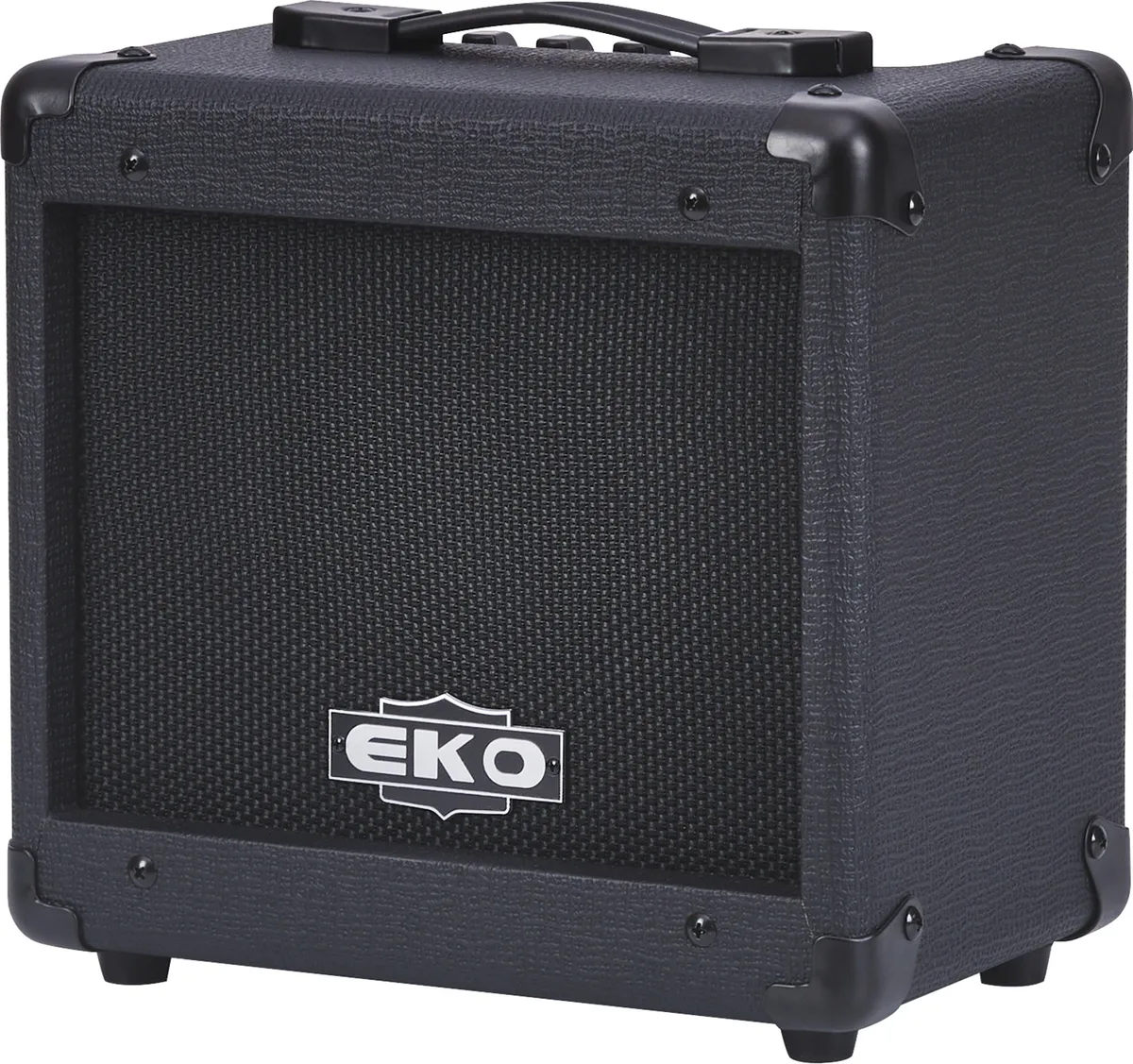 A super compact format!The G-BS10 was developed by Eko, in partnership with technician Roberto Tittarelli, to offer guitarists a small, lightweight, and compact transistor combo for practicing electric guitar. This combo delivers 10W through a 8inch speaker and allows you to explore a variety of sounds and musical styles thanks to its two channels (clean and drive) selectable via a switch, for clear or more saturated sounds.Simple but effective!The G-BS10 features a simple but effective interface: a gain control, complemented by a classic three-band EQ, and a volume control to manage the two channels. In addition to the guitar input, this small amplifier includes an auxiliary input for playing along with your favorite songs, as well as a headphone output for discreet practice when needed.Compact and lightweight at 4.8 kg, the G-BS10 is an ideal guitar combo for beginner guitarists looking for an amplifier for home use or small rehearsals, at a very reasonable price.
