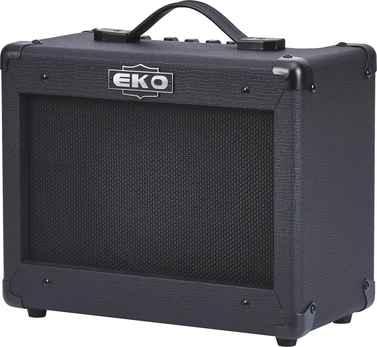 A super compact format!The G-BS15 was developed by Eko, in partnership with technician Roberto Tittarelli, to offer guitarists a small, lightweight, and compact transistor combo for practicing electric guitar. This combo delivers 15W through a 8inch speaker and allows you to explore a variety of sounds and musical styles thanks to its two channels (clean and drive) selectable via a switch, for clear or more saturated sounds.Simple but effective!The G-BS15 features a simple but effective interface: a gain control, complemented by a classic three-band EQ, and a volume control to manage the two channels. In addition to the guitar input, this small amplifier includes an auxiliary input for playing along with your favorite songs, as well as a headphone output for discreet practice when needed.Compact and lightweight at 4.8 kg, the G-BS15 is an ideal guitar combo for beginner guitarists looking for an amplifier for home use or small rehearsals, at a very reasonable price.