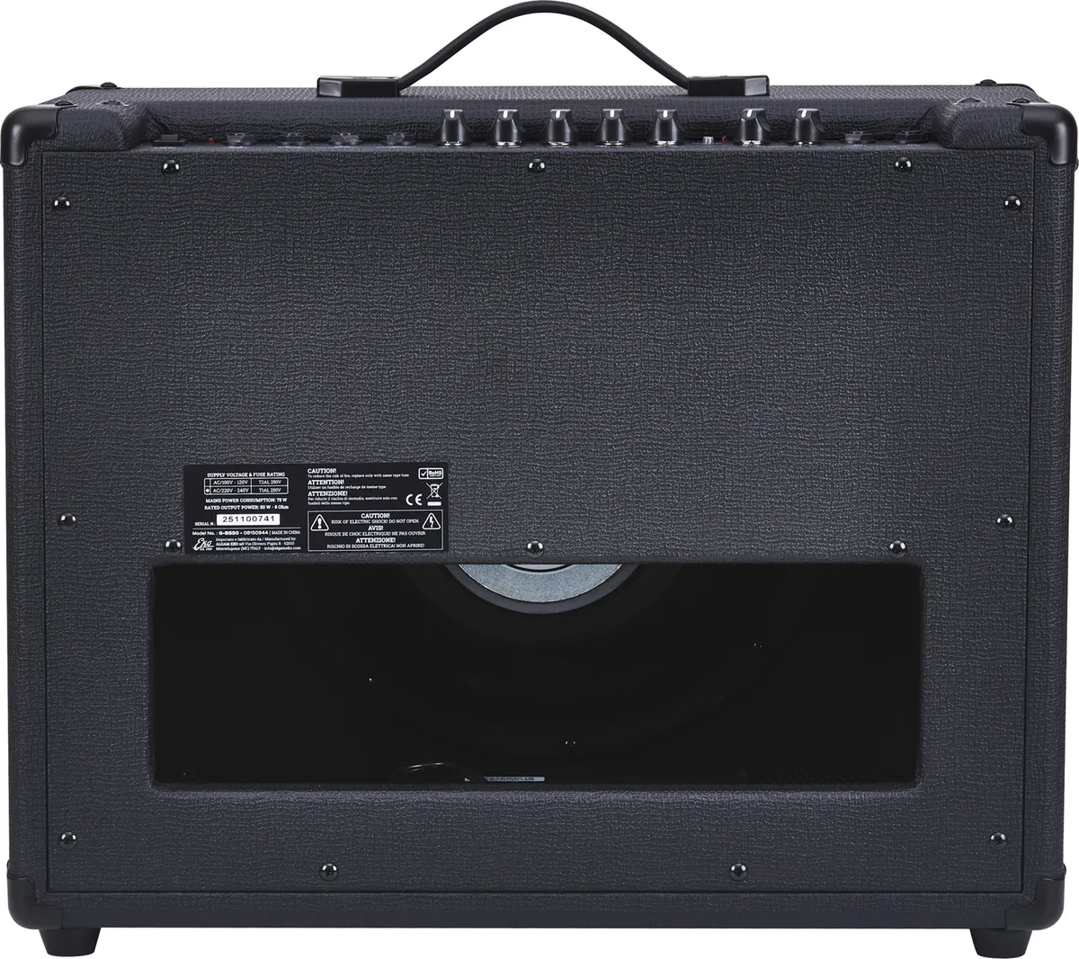 - Category: Guitar combo- Color: Black- Dimensions (mm) : 515 × 420 × 265 - EQ: 3 channels- Effects loop: Yes- Footswitch input : Yes- Headphone output : Jack 6.35- Input: 2 x jack- Number of channels: 2- Pedalboard included : No- Power output: 50 W- Power supply: AC Adapter- Reverb : Yes- Speaker diameter: 12"- Technology : Solid state- Weight: 14.70 kg