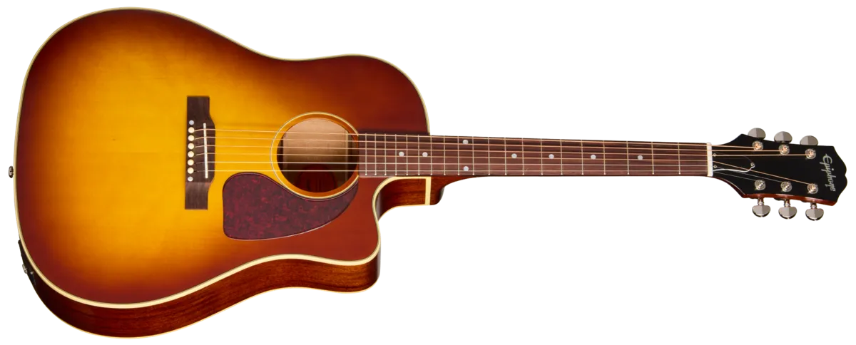 The Gibson J-45M has been the cornerstone of Gibson's round shoulder acoustic lineup since it was first introduced in 1942. It is the most popular acoustic guitar model ever made by the company. Renowned for its no-nonsense practicality and wide acceptance and use across genres, it quickly earned the nickname, "The Workhorse." Now, Epiphone is proud to introduce the J-45 Standard EC. This new model, which is part of the Inspired by Gibson Collection, features all of the tone and utility of the J-45 Standard, but also incorporates the advantages of a cutaway body for even more expressiveness and upper-fret accessibility.The J-45 Standard EC features a round shoulder cutaway body with a back and sides made from solid mahogany. The mahogany body is paired with a solid spruce top for the classic tonewood recipe that is at the heart of the J-45 design. Since it is made from solid tonewoods, the sound of this guitar will only improve as it ages. The one-piece mahogany neck is glued to the body and attaches with a tapered dovetail joint. The neck has a comfortable Rounded C profile and is topped with a rosewood fretboard with 20 standard frets and mother-of-pearl dot inlays. The headstock features the popular 60s Kalamazoo shape, and is equipped with precise and smooth-turning Grover® Rotomatic® tuners and a bone nut, and is adorned with the Epiphone logo inlaid in mother-of-pearl. The Epiphone J-45 Standard EC also comes with a Fishman® S-Core under-saddle piezo pickup and PreSys Il preamp preinstalled, so it's ready for live performances as well as studio recording. The preamp features side-mounted controls for volume, bass, treble, and a phase switch, while a combination battery box and endpin output jack make battery replacement easy. It even has an electronic tuner built in so you can quickly and easily check your tuning, even in the middle of a gig. A premium gig bag is also included to help keep the J-45 Standard EC safe when not in use, and allows for easy grab-and-go transport to your next jam session, rehearsal, or gig.A battery is not included. To power your pickup, you will need a 9-volt battery.