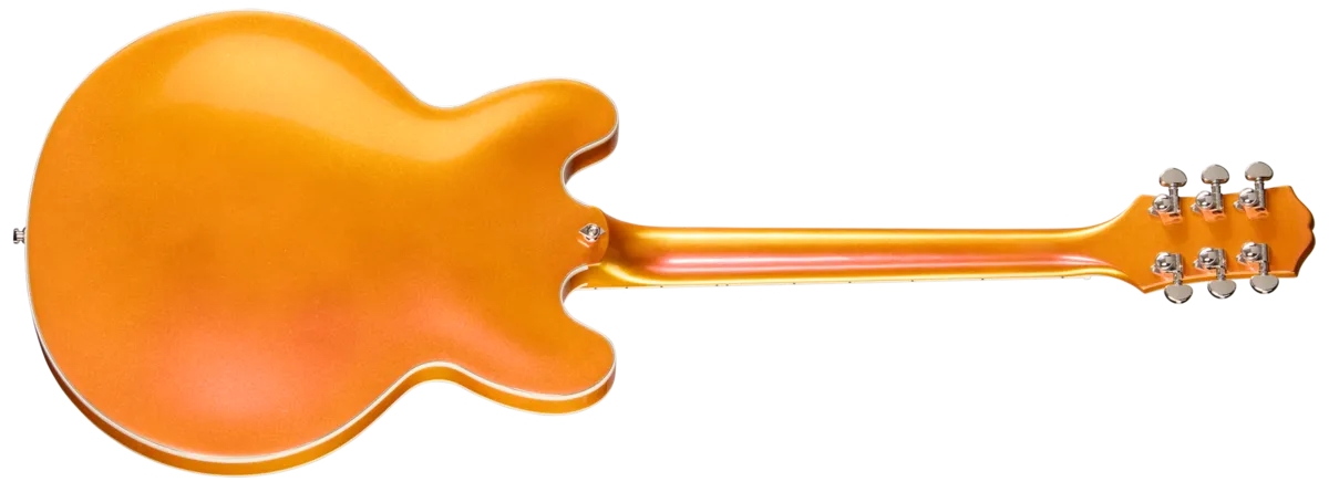 The new Futura Series guitars from Epiphone are designed for today's guitarists who want an instrument that delivers professional performance and forward-thinking features. These Inspired by Gibson models deliver tone and style that's perfect for gigging, recording, or content creation in the modern era. With bold, color-shifting finishes, all-new pickups, and versatile electronic features like coil splitting and phase switching, they have the look and sound that today's players need to stand out from the crowd and make their own statement, both sonically and visually. Other high-performance features, including stainless steel frets, compound-radius fretboards, and ultra-comfortable neck profiles, make the Futura Series guitars truly innovative and a must-have addition for any guitar collection.The Gibson ES-355 M has been a favorite among players for decades, and Epiphone is proud to introduce the Futura ES-355—a contemporary interpretation of the legendary semi-hollow design first introduced in 1958. This model features a solid maple centerblock with a weight-relief window, enhancing sustain and reducing feedback while keeping the guitar lightweight and comfortable. A LockTone M Tune-O-Matic ™ bridge and LockTone Stop Bar tailpiece provide rock-solid intonation and sustain, while Posi-Lok™ strap buttons keep your strap secure without additional hardware. The mahogany neck sports a fast-playing Modern C profile and a bound ebony fingerboard with 22 stainless steel medium jumbo frets and elegant Super 400-style pearloid split block inlays. A 10"-14" compound radius ensures smooth chording and effortless bends. The 5-ply bound Kalamazoo headstock is fitted with locking Grover® Rotomatic® tuners, a Graph Tech® nut, and mother-of-pearl Epiphone and Custom split diamond inlays.The Futura ES-355 is powered by a pair of Epiphone's new ProBucker™ Ignite humbuckers M delivering dynamic, articulate tone with plenty of clarity. Push/pull volume and tone controls unlock coil-splitting and phase options for maximum versatility. Available in three stunning Chromashift finishes-Firestorm Shift, Dragonfly Shift, and Midnight Ember Shift-this guitar is designed to make an impression on stage or on screen. Whether you're after a modern aesthetic, a wide tonal palette, or a high-quality semi-hollowbody, the Futura ES-355 is ready to inspire. Each one ships with a premium gig bag, so it's prepared to go wherever your music takes you.