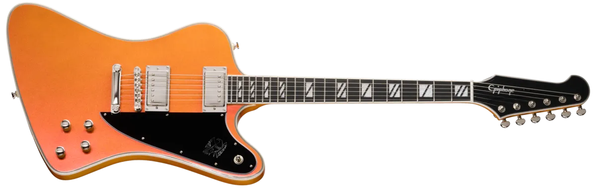 The new Futura Series guitars from Epiphone are designed for today's guitarists who want a guitar that delivers professional performance and forward-thinking features. These Inspired by Gibson models deliver tone and style that's perfect for gigging, recording, or content creation in the modern era. With bold, color-shifting finishes, all-new pickups, and versatile electronic features like coil splitting and phase switching, they have the look and sound that today's players need to stand out from the crowd and make their own statement, both sonically and visually. Other high-performance features, including stainless steel frets, compound-radius fretboards, and ultra-comfortable neck profiles, make the Futura Series guitars truly innovative and a must-have addition for any guitar collection.The Gibson Firebird ™ remains one of the most iconic and instantly recognizable shapes in the electric guitar world. Originally conceived by legendary automotive designer Ray Dietrich, its bold lines drew inspiration from classic car styling and the Gibson Explorer"™ . Epiphone proudly introduces the Futura Firebird Custom—a modern interpretation of a design that was revolutionary when it debuted in 1963. Its sculpted mahogany body features elegant 7-ply top binding and a contoured back for enhanced comfort. A LockTone ™ Tune-O-Matic ™ bridge and LockTone Stop Bar tailpiece deliver rock-solid intonation and sustain, while Posi-Lok™ strap buttons keep your strap secure without extra hardware. The glued-in mahogany neck sports a fast-playing Modern C profile and a bound ebony fingerboard with 22 stainless steel medium jumbo frets and striking Super 400-style pearloid split block inlays. A 10"-14" compound radius ensures smooth chording and effortless bends. The bound Reverse Firebird headstock is fitted with locking Grover® Mini Rotomatic® tuners, a Graph Tech® nut, and a Firebird truss rod cover bearing the Epiphone logo.Powering the Futura Firebird Custom are a pair of Epiphone's new ProBucker™ Ignite humbuckers TM ', delivering punchy, articulate tone with plenty of headroom. Push/pull volume and tone controls unlock coil-splitting and phase options for maximum versatility. Available in four stunning Chromashift finishes-Firestorm Shift, Quicksilver Shift, and Midnight Ember Shift-this guitar is designed to turn heads on stage or on screen. Whether you're after a modern aesthetic, a wide tonal palette, or an instrument that performs like a pro, the Futura Firebird Custom is ready to elevate your music. Each one ships with a premium gig bag, so it's prepared to go wherever your creativity takes you.