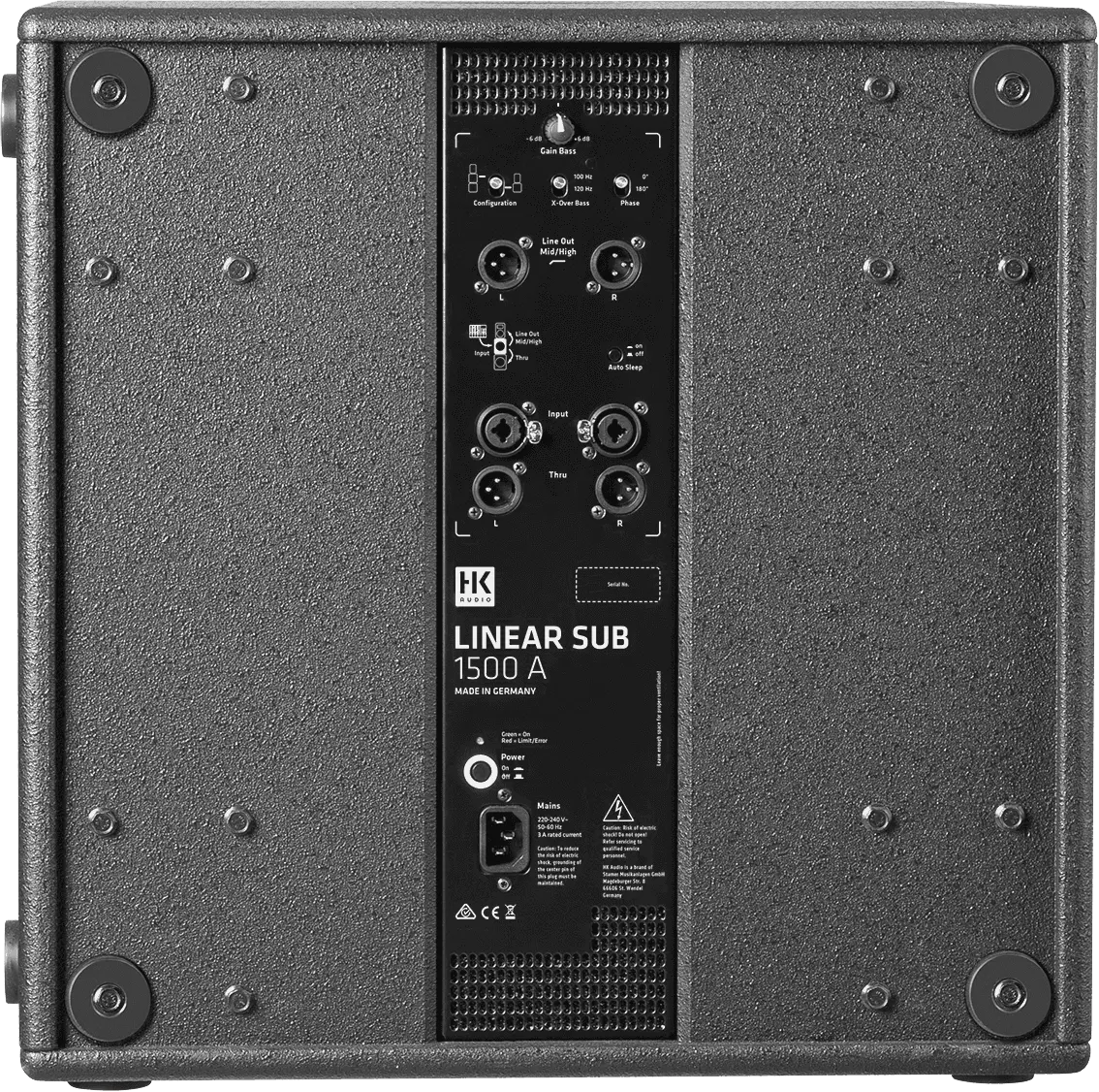 LINEAR SUB 1500 A is – a 15” bass reflex subwoofer – a diminutive miracle of power. A powerful punch, precise playback and an impressive low end (all the way to 45 Hz) make this powered sub the perfect add-on to mid/high units from the LINEAR 3 family when particularly dynamic and crisp bass response is required. What’s more, LINEAR SUB 1500 A can also be used in combination with mid/high units from the LINEAR 5 family, or as a bass extension to the ELEMENTS EASY BASE, SMART BASE and LINE BASE systems.