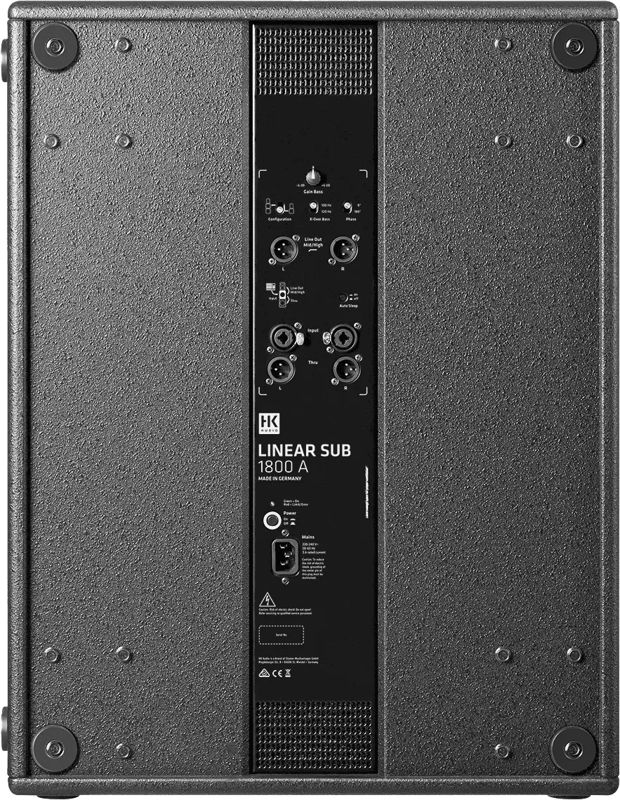LINEAR SUB 1800 A – an 18” bass reflex subwoofer – is packed full of low end. Unrivaled power, SPL of up to 132 dB and thumping bass (all the way to 38 Hz) make this powered sub the ideal add-on to mid/high units from the LINEAR 3 family when you need just a little more loudness and low end. LINEAR SUB 1800 A can also be used in combination with mid/high units from the LINEAR 5 family, or as a bass extension to the ELEMENTS BIG BASE system.