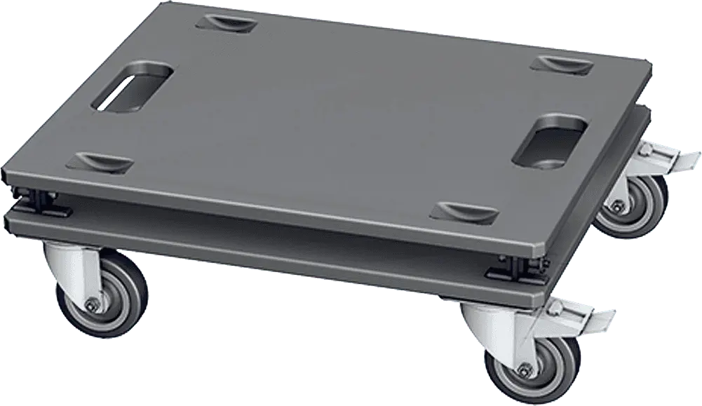 The COSMO C-WB Wheelboard offers a simple and space-saving alternative for transporting the COSMO C 6, C 8 or C 10 mid/high units. The line array units are well protected during transport thanks to the top plate. An optional matching protective cover is also available, providing the necessary protection during onward transport of the line array. The package contains the wheelboard and the top plate.