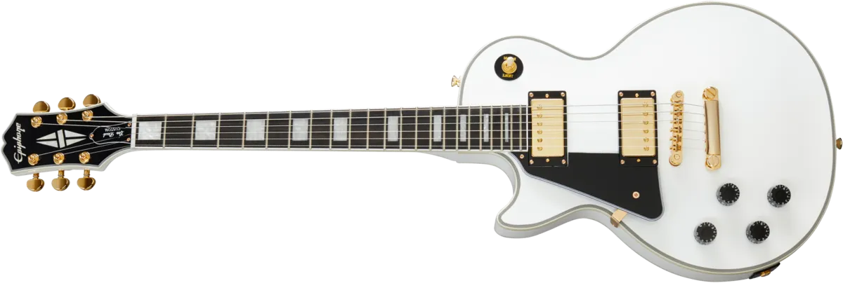 The new Les Paul Custom is part of Epiphone’s Inspired by Gibson Collection and honors the 1950s classic designed by Mr. Les Paul in 1954 as the “tuxedo” version of his groundbreaking solid body masterpiece. Featuring a traditional Custom-style Mahogany body and Ebony fingerboard, gold hardware, critically acclaimed ProBucker™ humbuckers with CTS electronics, Grover® machine heads, and Custom-style inlay.