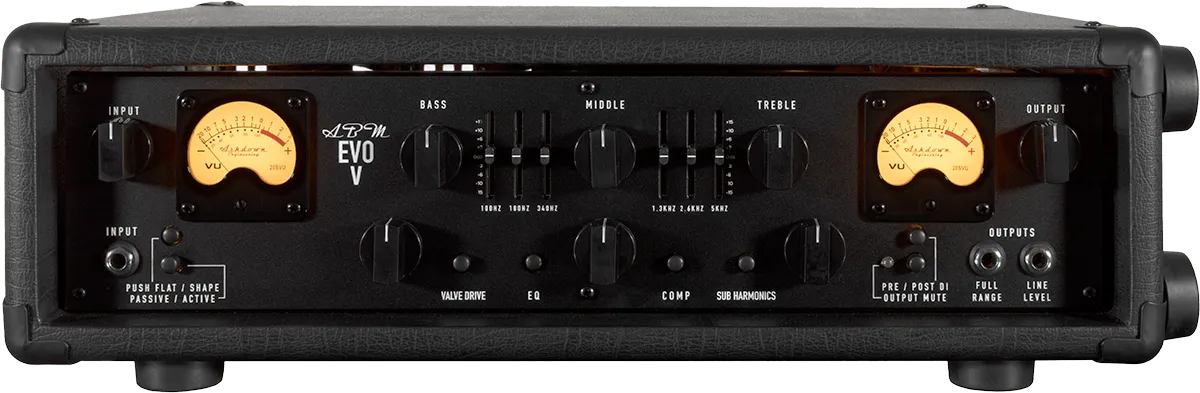 All the much-loved ABM features remain in evidence including 9 band EQ, 12AX7-powered Valve Drive, on-board compressor, and sub-harmonic control, with the UK-built EVO V adding mains voltage switching, temperature controlled low noise cooling and a transformer-isolated DI output.