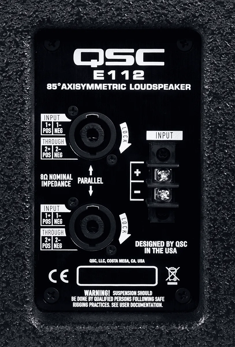 The E112 is a trapezoidal, two-way loudspeaker using a 12-inch die cast aluminum woofer with a 3-inch voice-coil. The 15mm, 11-ply enclosure provides enough volume to deliver solid low-frequency extension down to 65 Hz making it an excellent choice for applications in which space or budget preclude the use of a subwoofer. The DMT coverage angle of 85° is ideal for most medium and medium-long throw applications.
