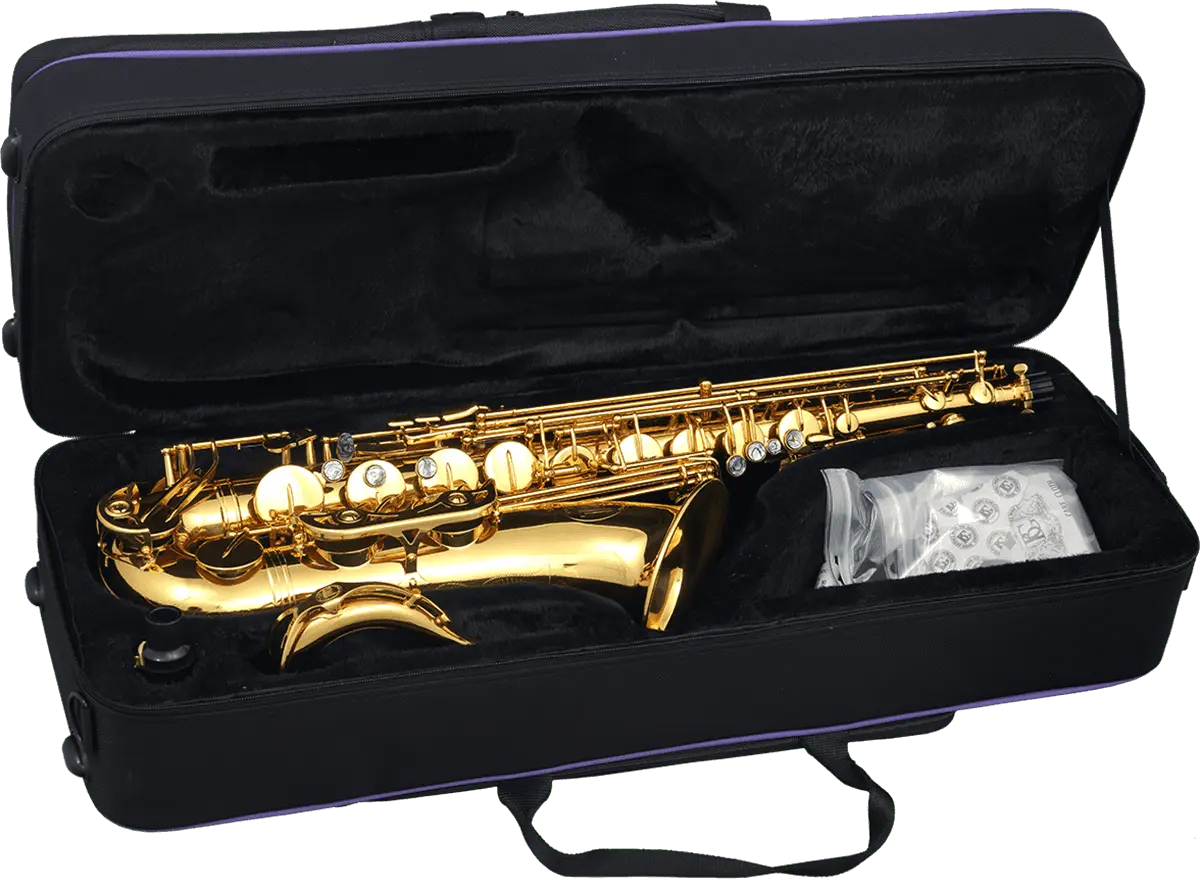Bb, gold lacquer engraved bell. Adjusting screw on both hands. Double arm on C - B - Bb. Ergonomic left finger table. Metal thumb rest. Vivo bocal.