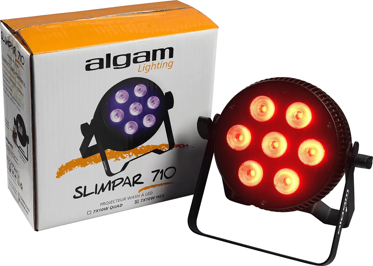 SLIMPAR LED floodlights represent a compact and economical lighting solution for all types of private or professional indoor events. Available in QUAD (RGBW) or HEX (RGBW + Amber + UV) version and available in several models of 5, 7 and 12 LEDs of 10W, the SLIMPAR have a compact profile ideal for situations where space constraints are strong, while offering a wide angle of diffusion of 60 °. Versatile, they are able to operate automatically and follow the rhythm of music, or be controlled via a DMX controller and the supplied infrared remote control. The installation of the SLIMPAR is very easy thanks to its double bracket which facilitates its installation on the ground and its passive cooling.