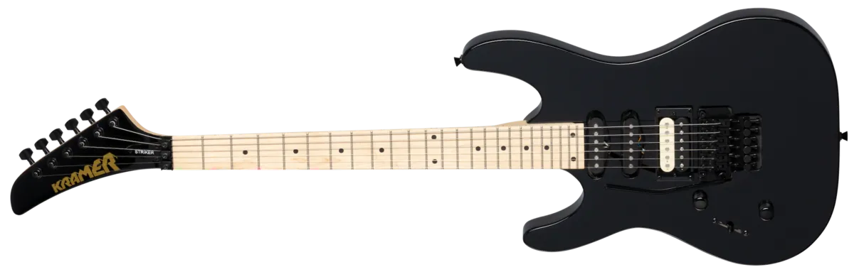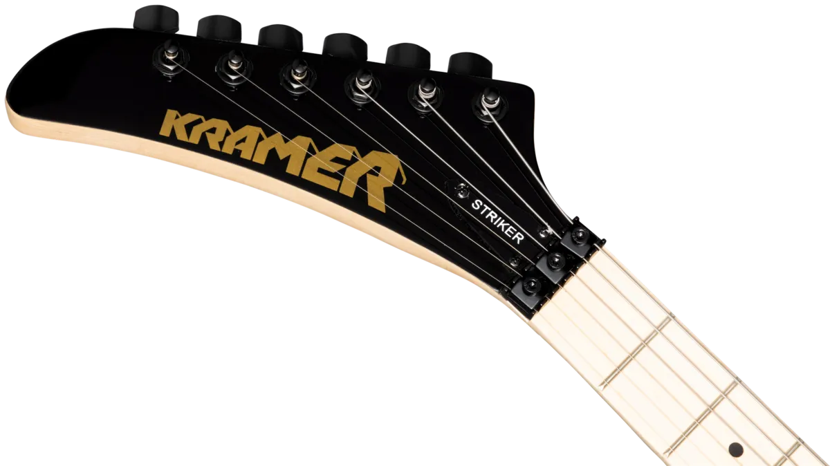 The Kramer Striker™ is part of the Kramer Modern Collection and is a perfect entry to the world of Kramer's high-performance, shred-ready guitars! It features a satin-finished maple neck with a Kramer K-Speed SlimTaper™ C profile; it's fast, easy-playing, and incredibly comfortable. The exceptionally sonically versatile Striker comes equipped with three Alnico 5 pickups, including a zebra-coil bridge humbucker™ and two single coils, so it can provide sparkling clean single coil tones as easily as it delivers hard-rocking humbucker tones. It also has a licensed Floyd Rose® locking vibrato so you can use the whammy bar to your heart's content while remaining in tune.