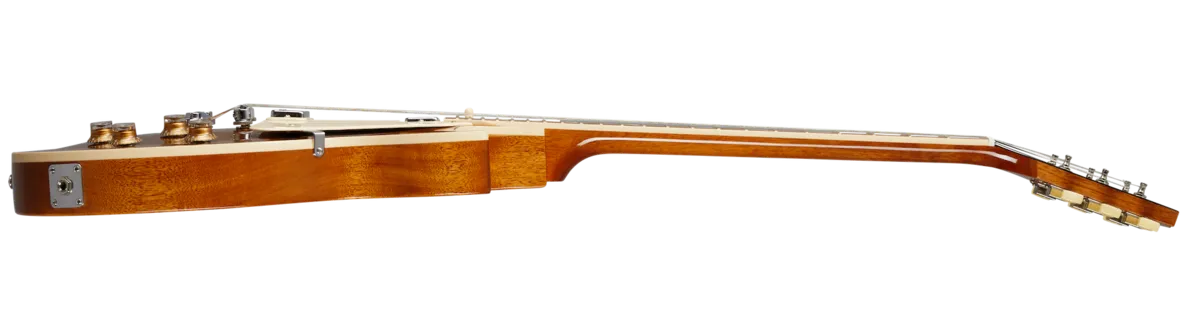 First released in 1969, the Deluxe saw the introduction of the Mini Humbucker™ to the Les Paul™ lineup. Mini Humbuckers retain the hum-free performance of their full-sized cousins but with a somewhat clearer and brighter tonality. The new Deluxe has features that were inspired by those early models from the 1970s, with a non-weight relief mahogany body and bound maple top, a bound mahogany neck with a Rounded C profile, vintage-style Keystone tuners, a Graph Tech® nut, and a traditional Les Paul control layout with 2 Volume and 2 Tone controls hand-wired with Orange Drop® capacitors.