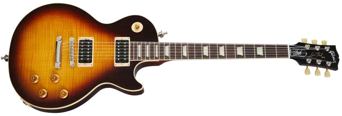 Gibson and Slash are proud to present the Slash Collection Gibson Les Paul™ Standard. It represents influential Gibson guitars Slash has used during his career, inspiring multiple generations of players around the world. The Slash Collection of Gibson guitars can be seen live on stage with Slash today. Each Slash Collection Gibson Les Paul Standard features a AAA flamed maple top, a solid mahogany body, and Slash’s personal touches including a 50s neck profile, Gibson Custom BurstBucker™ Alnico 2 pickups, color-coordinated hardware appointments, hand-wired electronics with Orange Drop® capacitors, and a vintage-style brown hardshell case. Exclusive to the Slash Collection are Slash’s “Skully” signature drawing on the back of the headstock, Slash’s signature on the truss rod cover, a blank truss rod cover in the case, Slash-approved Ernie Ball® strings, and four Slash Jim Dunlop Tortex® picks. The Slash Les Paul Standard is available in November Burst and Appetite Burst.
