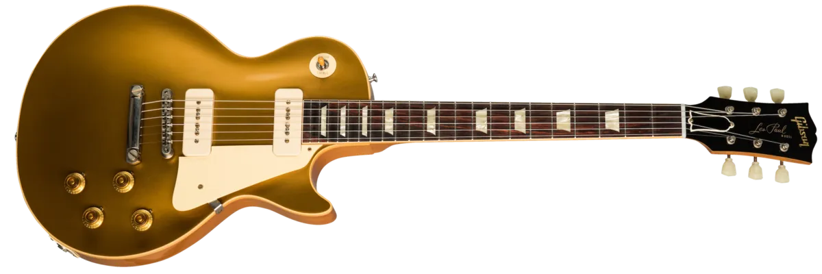 1956 was the only full year in which the Les Paul model featured the powerful P-90 pickups and the adjustable ABR-1 bridge setup, a combination that allowed the Les Paul model to intonate, sustain, and thrill like never before. This Gibson Custom Shop '56 Reissue captures the look, feel and searing sound of an original 1956 Les Paul Goldtop in exhaustive detail, featuring all solid woods, vintage-accurate gold paint, authentic replica parts, Historic narrow/tall frets, and hot hide glue construction.