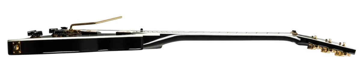 The modern player's choice! The iconic Les Paul Custom is re-imagined in this Axcess version, featuring the new Apex headstock for added strength, redesigned contours for added comfort and fingerboard access, and powerful coil-tapped humbuckers for sonic versatility and strength. The Floyd Rose Tremolo and locking nut provide tuning stability during the craziest dive-bombs, while the solid Ebony fingerboard retains clarity in every fretted note and chord. But with all the added features, the Les Paul Custom Axcess is still a Custom Shop "Black Beauty" at the core, with showstopping looks thanks to its multi-ply binding, pearl appointments and gold hardware.
