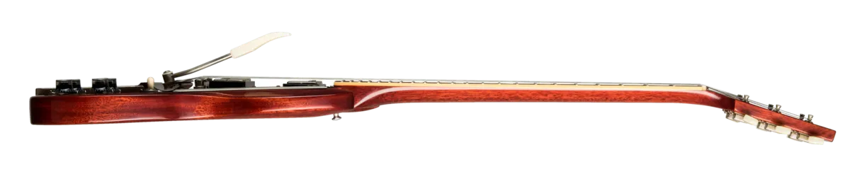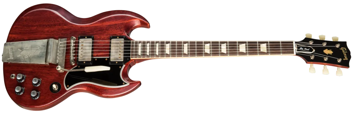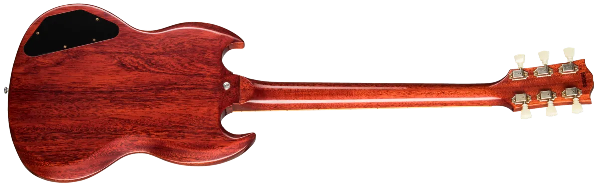 Regardless of the fact that George Harrison and Eric Clapton rocked a '64 SG™ Standard, that model year was clearly a standout for SGs in general. The clunky side-pull vibrato had been replaced by the dependable Maestro Vibrola. The neck profiles had increased in size, resembling the profile found on 1959 Les Pauls™. And the balance, playability and look of the SG seemed to come into its own. For all those reasons, the Gibson Custom Shop is proud to present the newest member of the Historic Reissue family -- the 1964 SG Standard Reissue. Along with the Maestro™ Vibrola and chunky neck profile, it has all the hyper-accurate vintage specs one could possibly want -- original construction methods, a real red aniline dye finish, chemically-recreated plastics, replica electronics, and more. The result is perhaps the best looking, feeling and sounding SG Reissue yet.