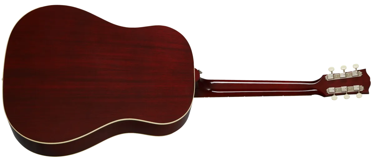 When you listen to a Gibson round-shoulder acoustic, you will notice that it responds exactly to the player's style and technique - powerful one moment, soft and mellow the next. This 60s J-45 Original offers a period-correct 1 11/16’’ nut width, allowing for comfortable fingering in any position along the mahogany neck. The easily-adjustable saddle can be fine-tuned to players' unique string action preference. The new 60s J-45 Original features double antiqued binding, Grover strap cream button tuners, and our famous white pickguard with hot stamp logo.