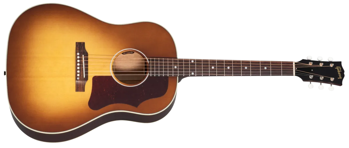 The J-45 is Gibson's best-selling acoustic of all time. Nicknamed "The Workhorse" and first introduced in 1942, this iconic acoustic has become the cornerstone of its round-shoulder, dreadnought line. World-renowned for its full, balanced expression, warm bass, and excellent projection, the J-45 has been refined to carry this legacy to new heights. The Gibson J-45 50s Faded delivers full-spectrum sound with incredible dynamic range, warm mids, and tight, punchy bass. Now available with a faded satin nitrocellulose lacquer finish that accentuates the guitar's vintage vibe and equipped with a modern LR Baggs pickup and electronics package for studio and stage use. A hardshell case is also included.