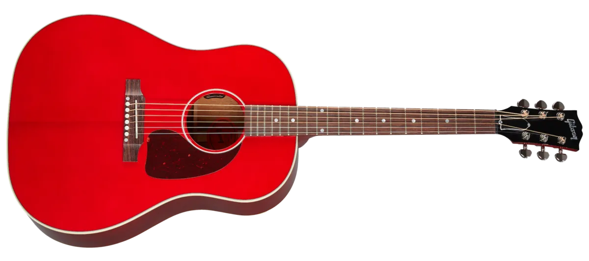 The J-45 is Gibson's best-selling acoustic of all time. Nicknamed "The Workhorse" and first introduced in 1942, this iconic acoustic has become the cornerstone of its round-shoulder, dreadnought line. World-renowned for its full, balanced expression, warm bass, and excellent projection, the J-45 has been refined to carry this legacy to new heights. The Gibson J-45 Standard's classic combination of a Sitka spruce top coupled with mahogany back and sides deliver a sound with incredible dynamic range, warm mids, and a tight punchy bass. Now available in Cherry; a Gibson hardshell case is included.