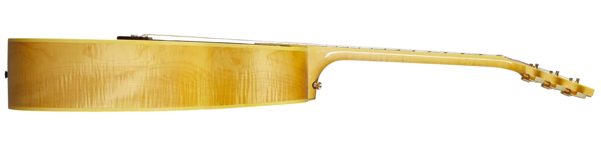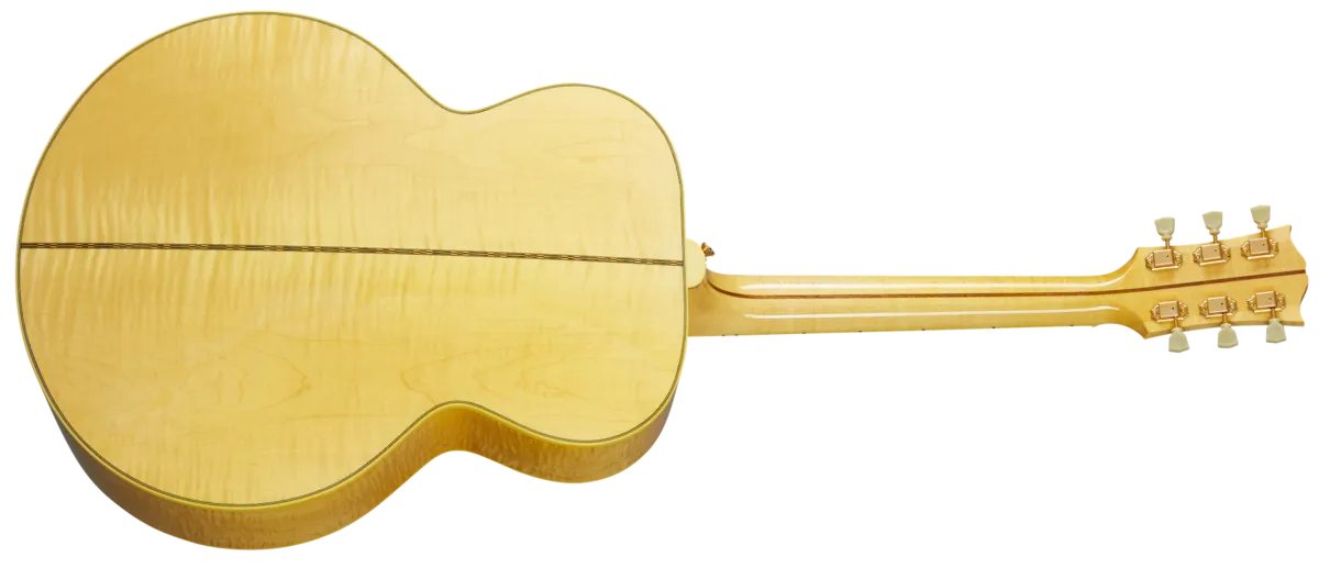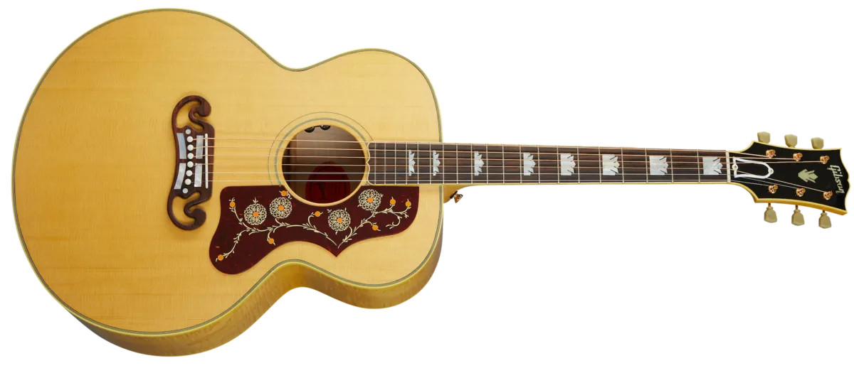The Gibson SJ-200 is the world's most famous acoustic guitar and earned its designation as the "King of the Flat-Tops." Since its release in 1937, its wide use by American artists has made the Super Jumbo one of the most widely played acoustic guitars of our time. The most striking features of the new SJ-200 Original include the carved four bar Moustache bridge, an engraved tortoise pickguard, mother-of-pearl crown fretboard and headstock inlay, and exquisite flamed maple back and sides. The SJ-200 is an American original with its shape and elegant appearance.