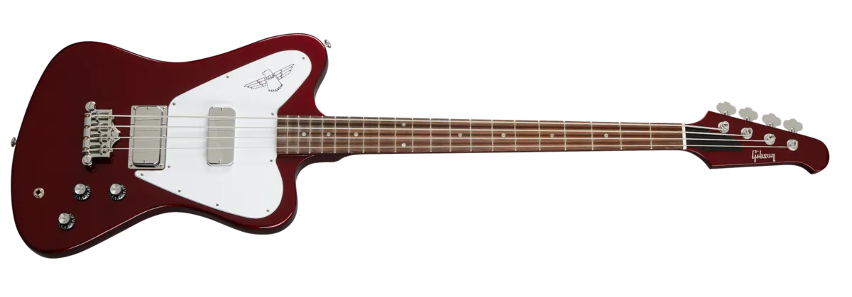 Ever since it was first released back in 1965, the Non-Reverse Thunderbird has been THE choice for forward-looking bassists who want to make their own path and steadfastly refuse to follow the crowd. The Non-Reverse Thunderbird's distinctive styling and huge, thunderous tone make it a standout on stage and in the studio. Now you have the opportunity to make one of these relatively rare 'birds your own with the release of the new Gibson USA Non-Reverse Thunderbird. Equipped with a Non-Reverse mahogany body and mahogany neck with a rosewood fretboard and 20 medium jumbo frets, each of the two Thunderbird pickups has a volume control, allowing you to use them separately, or to blend them in any amount you prefer. A master tone control rounds out the simple yet highly effective control layout. The three-ply white pickguard features the iconic Thunderbird graphic. The Non-Reverse Thunderbird is equipped with a Graph Tech® nut. A 3-point adjustable bridge provides a full range of adjustment for action and intonation, while Hipshot® Ultralite® tuning machines hold down the strings at the other end and deliver accurate and stable tuning while keeping headstock weight low to improve balance. Available in Inverness Green, Faded Pelham Blue, and Sparkling Burgundy, a hardshell case is included.