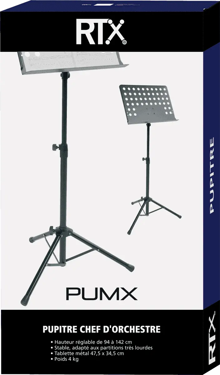 Robust and stable music stand for conductors and with 3 perforated metal plates.