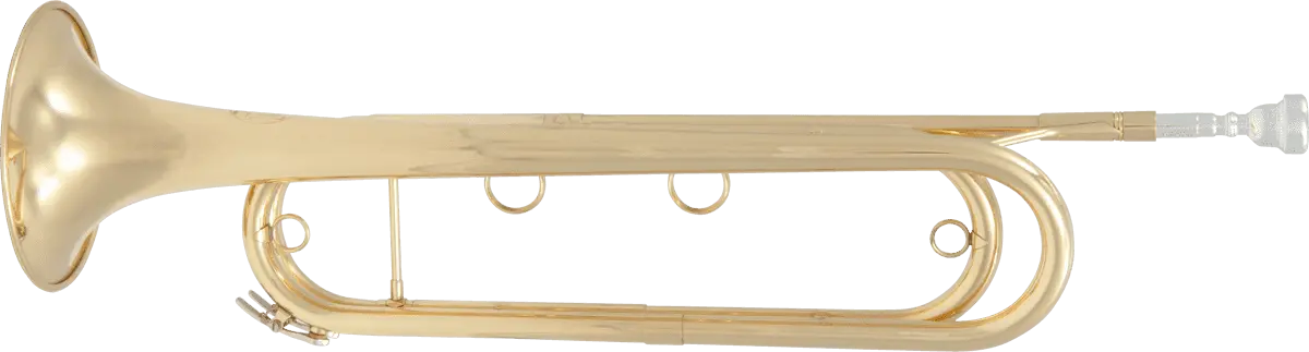 The soloist’s instrument! Two finger rings held similar to the piston trumpet. The sound is rich and has incredible projection. The 13 fundamental notes have perfect precision, high register sound easily. Reversed leadpipe. 2 waterkeys.