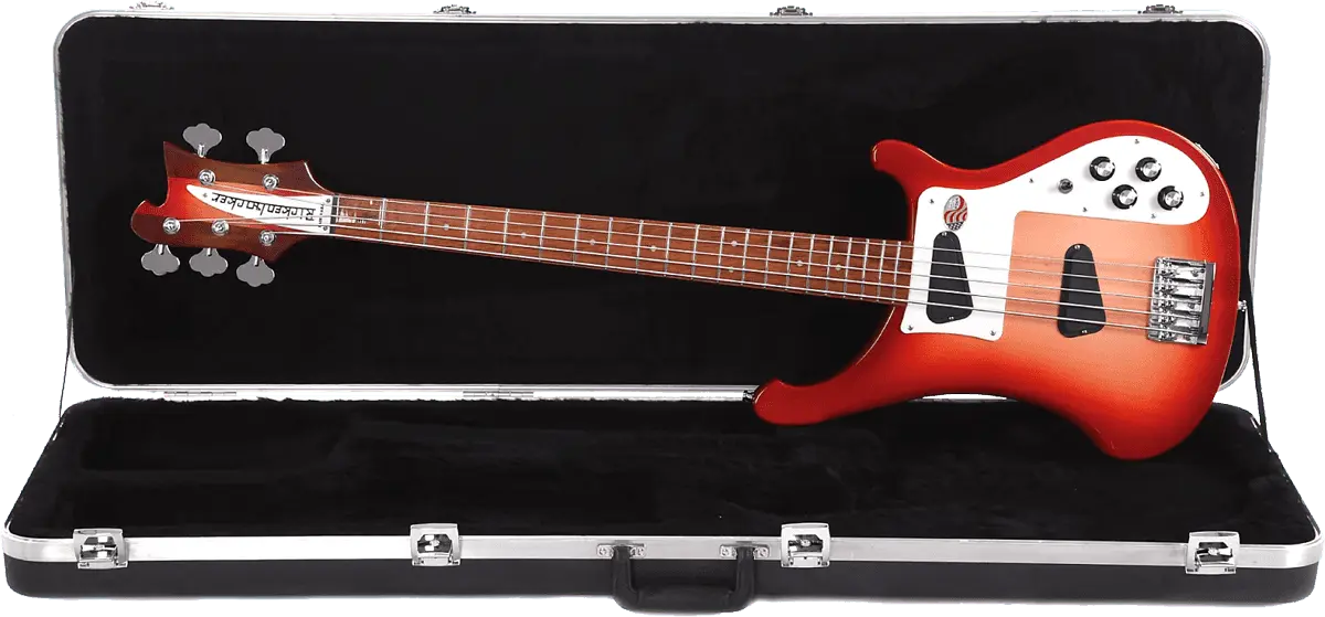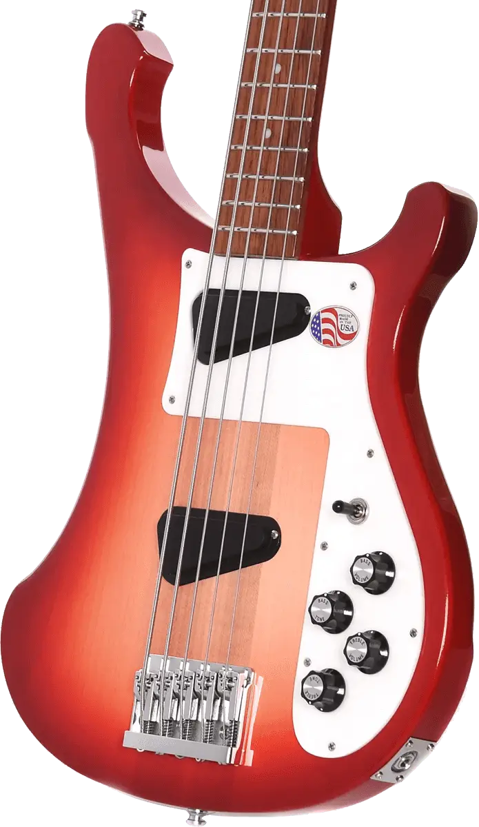 The pickup was re-engineered with two blade magnets that angle further out towards the B-string to work at a wider magnetic field, which offers evenness across the strings. Rickenbacker builds the bass with a maple body, maple neck, and rosewood fingerboard. Other features include a 33 1/4-inch scale, dot inlays, and Schaller deluxe tuners.