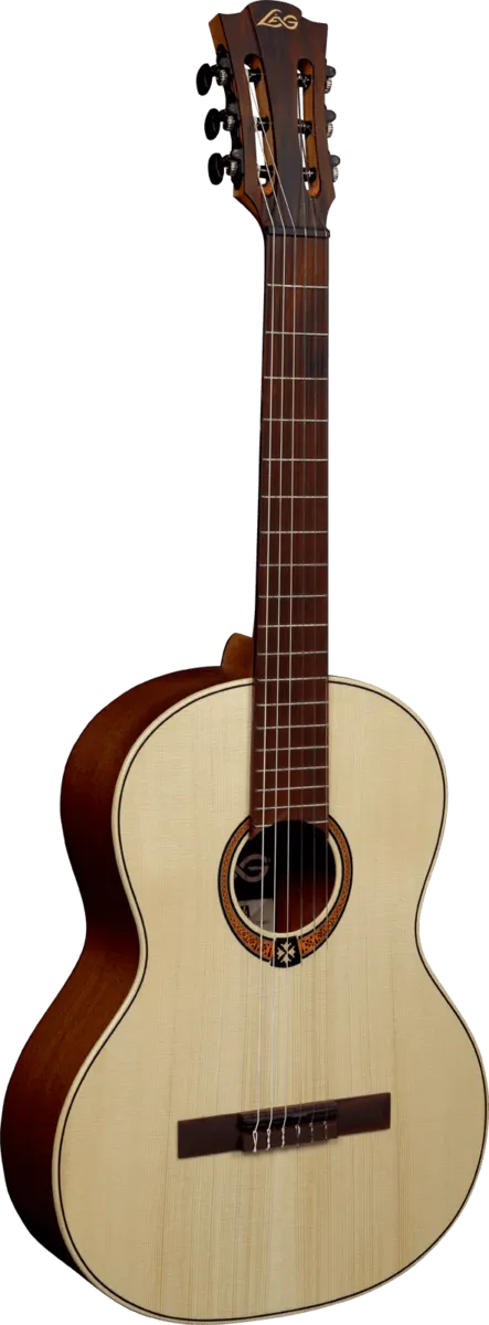 The Lâg OC70 classical guitar from the Occitania series is a wonderful combination of tradition and innovation. The solid Canadian Spruce top, Sapele back and sides, and black graphite nut and saddle make this guitar an outstanding choice for both beginners and classical guitar enthusiasts.