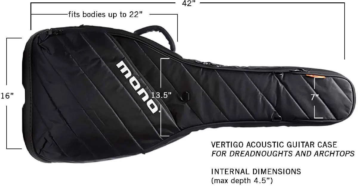 These measurements represent the inner capacity of the case. If you are unsure about the fit for your guitar, make sure it does not exceed any of the maximum dimensions shown just to be safe. This case is designed to fit all standard body acoustic dreadnought guitars including Martin, Taylor, Yamaha, Gibson and others. Also suitable for most archtops. Please check with support if you have any questions about fitting.