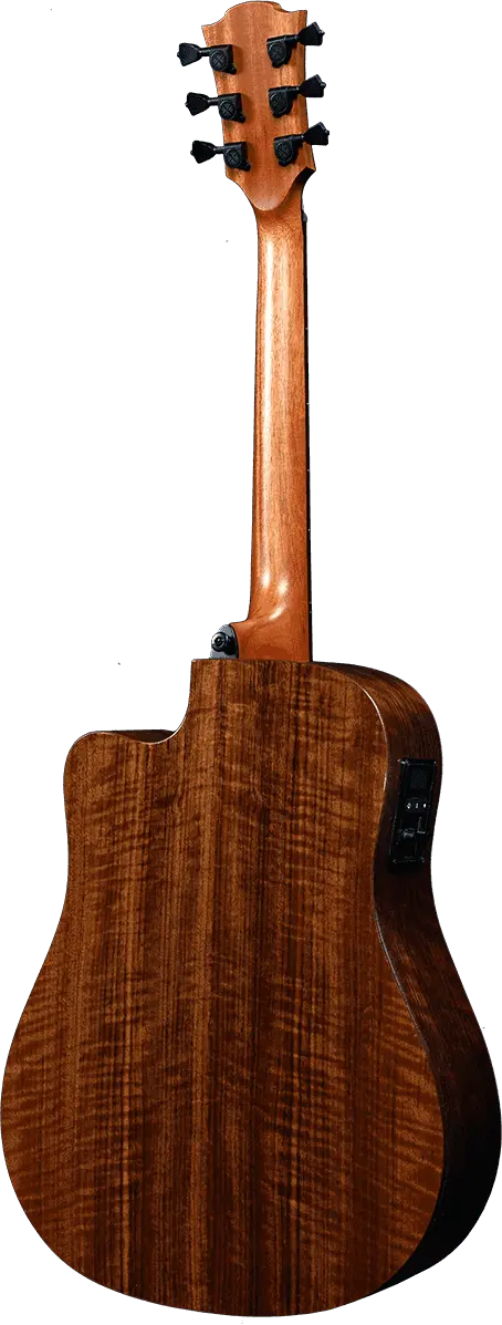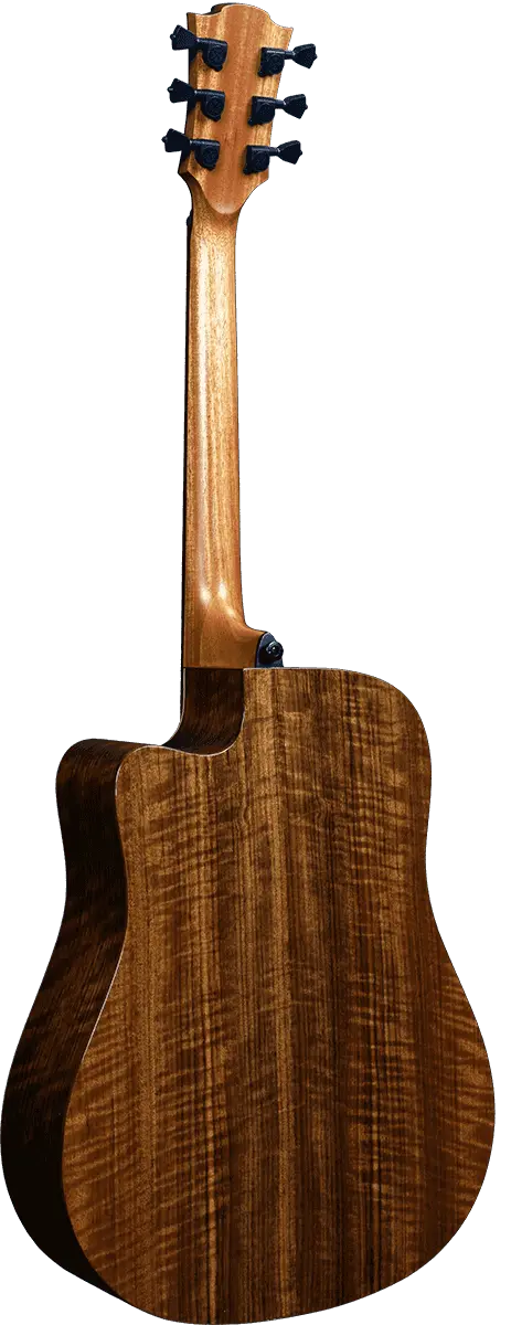 The THV20DCE maintains Lâg's iconic headstock, black graphite nut, saddle, and bridge pins, and high-quality die-cast tuners. Its elegant dreadnought cutaway shape, glossy finish, and unique rosette design add to its visual appeal.