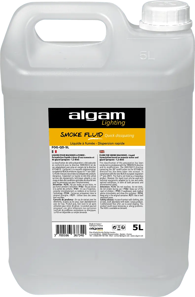 Quick dissipation is an essential part of smoke effects. Also known as the "geyser" or "CO2" effect, this smoke provides a genuine eye appeal. Algam Lighting fluids are manufactured in France according to an extremely strict process, in compliance with all the legal standards for these products. Reliable and efficient, Algam Lighting fluids are compatible with most machines on the market.