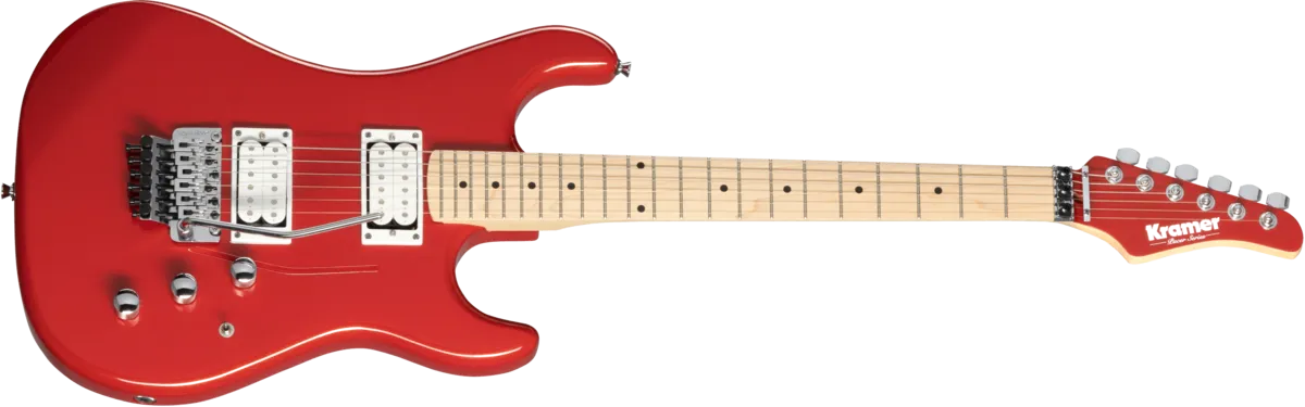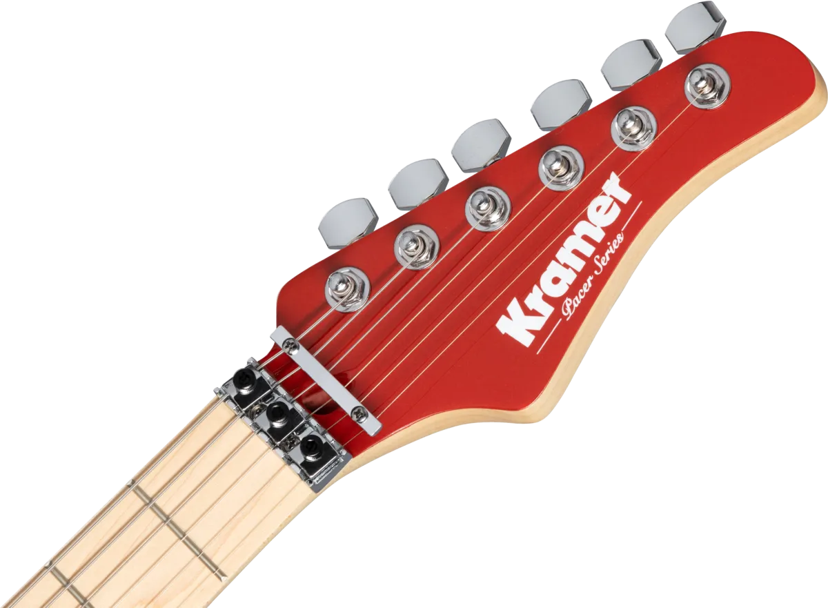 The Pacer Classic is part of Kramer's Original Collection and is a superb tribute to the original 1982 Kramer that knocked the guitar world for a loop. The Pacer Classic is built for speed, with a 25.5" scale maple neck with a Kramer K-Speed SlimTaper™ C profile and 22 medium jumbo frets. The Pacer Classic has chrome hardware, an alder double-cutaway body, a pair of double white, open-coil Alnico Classic 5 humbuckers™, and a licensed Floyd Rose® Tremolo bridge and R2 Locking Nut. Available in Radio Blue Metallic, Scarlet Red Metallic, and Purple Passion Metallic gloss finishes.