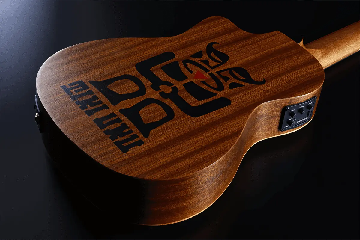A “double bass” version of the ukulele, complete with a solid spruce top and Indonesian rosewood fingerboard. The fretless Mini Bass Tiki Uku also features a preamp with a 3-band EQ and tuner. Achieve the sound of an acoustic bass with an instrument that’s smaller and easier to play.