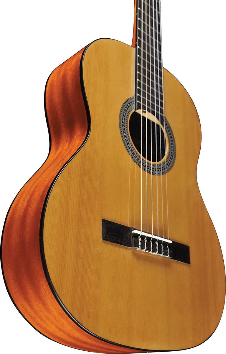 The Vibra 100 features a Cedar top, Mahogany back and sides, South American Roupana fingerboard and bridge, selected Mahogany fast neck, precise and sturdy mechanics. The VIBRA series is designed for classical guitar students.