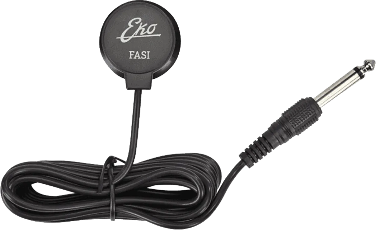 The FASI is a suction cup pickup with cable and jack, suitable for All Stringed Instruments. Last product born inside of the EKO accessories family. Designed to amplify acoustic guitars, gypsy guitars, resonator guitars and ukuleles. Very affordable and easy to use solution for people looking for a noninvasive amplification for their instrument. The suction cup is applied on top of the soundboard so that it adheres at best, if necessary by slightly moistening the suction cup. Open pore finish does not offer a lot of adhesion. It is recommended to test the FASI prior to purchase with instruments coming with open pore finish. The device is quickly applied and without affecting, in any way, the structure of the instrument, the cable length and jack make the setup very straightforward. The positioning of the pickup is easy and allows to discover different timbres by moving the pickup on the soundboard.
