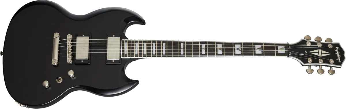 The Epiphone Prophecy SG brings high-performance features to the classic SG™ design, making it an excellent choice for today's progressive guitarists. The mahogany body is topped with a 1/2" maple cap and beautiful AAA flame maple veneer, along with a thinner Aged Vintage Gloss finish. The SlimTaper™ asymmetrical mahogany neck features a 24 fret ebony fingerboard with jumbo frets, Block and Triangle pearloid/abalone inlays with abalone selected to complement the body color, brushed nickel Grover® Locking Rotomatic® tuners, and a black Graph Tech® NuBone® nut. The Epiphone Prophecy SG comes with brushed nickel hardware and is equipped with a pair of proprietary Fishman Fluence® pickups with three voicing options that are selected with the push/pull master volume and tone controls - high gain, modern active high-output humbucker™ with both controls pushed in, classic Patent Applied For-style humbucker when the tone control is pulled out, and shimmering, optimized single-coil tones when the volume control is pulled out.