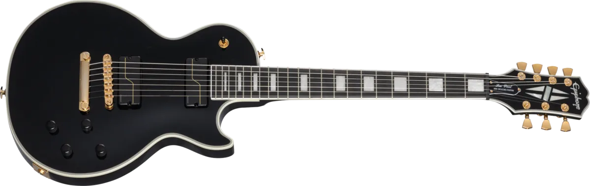 Epiphone is proud to introduce the Matt Heafy Les Paul™ Custom Origins 7-String, our newest signature model designed in partnership with Trivium’s extraordinarily talented Matt Heafy. It features a pair of custom-voiced Fishman Fluence® pickups, each of which delivers three distinct tones. The Alnico neck pickup provides a modern, active, high-output Alnico humbucker™ sound; a crisp, clean, and fluid neck humbucker sound; and a glassy, scooped, hi-fi single-coil sound. The ceramic bridge pickup offers a choice of modern, active, high-output ceramic-humbucker tone; high-output, passive ceramic-humbucker tone; and a cutting, overwound single-coil tone. Push-pull volume and tone pots put all these incredible sounds right at your fingertips and make it easy to explore the expansive sonic palette this guitar offers. The maple-capped mahogany body has modern weight relief for hours of comfortable play, and the mahogany neck has a fast-playing SpeedTaper™ D profile and a contoured heel for exceptional upper-fret access. Gold hardware, including locking Grover® Mini Rotomatic® tuners with Tulip buttons, and classic Les Paul Custom cosmetics make this a standout guitar on stage. Available in Ebony and Bone White gloss finishes in both right- and left-handed configurations. A custom hardshell case is included.